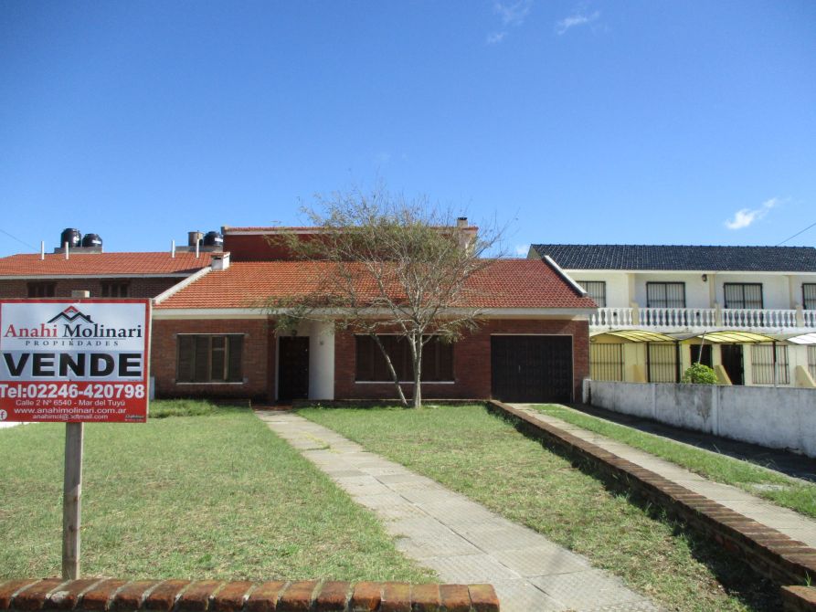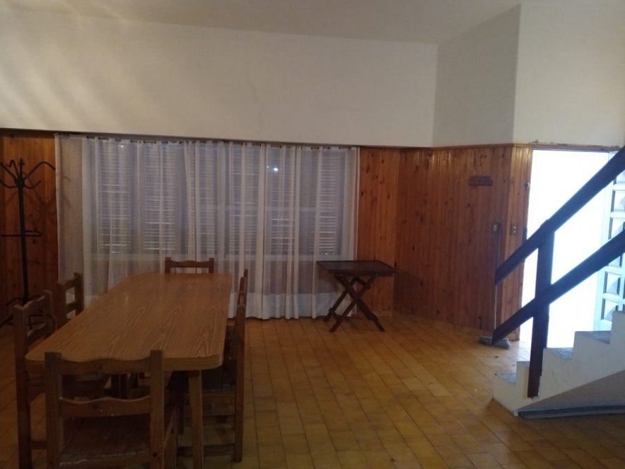 Chalet solo en el lote de 13 x 37,52 mts. 6 ambientes. Living c/ hogar, cocina-comedor, 5 dormitorios, 2 en PB, cada uno con baño propio y 3 en PA, toilette en PA. Lavadero cerrado c/ ducha.Escalera de hormigon. Amplio patio de 12,99 x 9,80 con parrilla. Parque al frente. Garage cubierto para dos autos. Sin muebles.