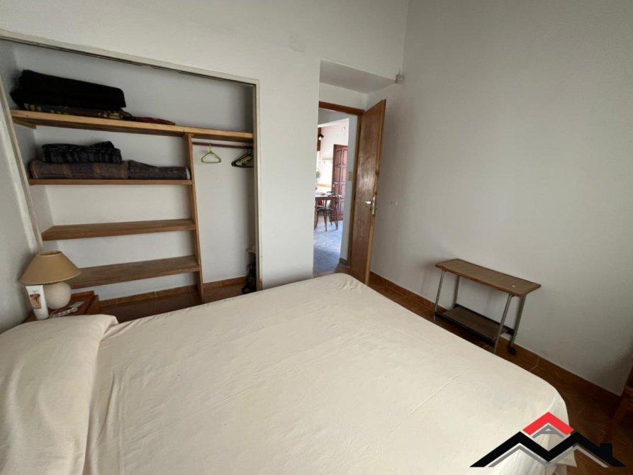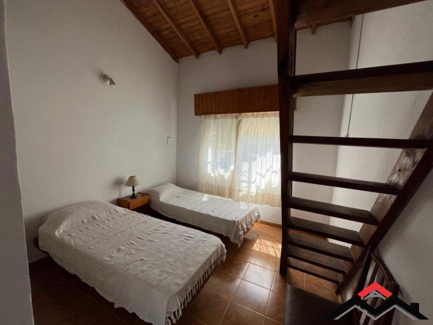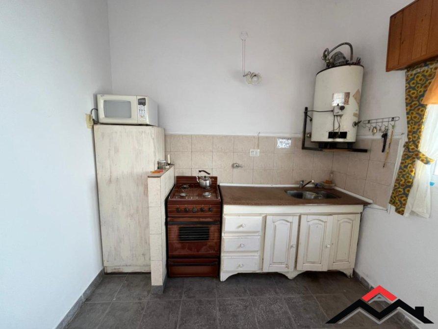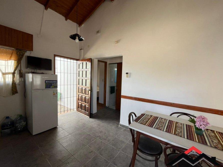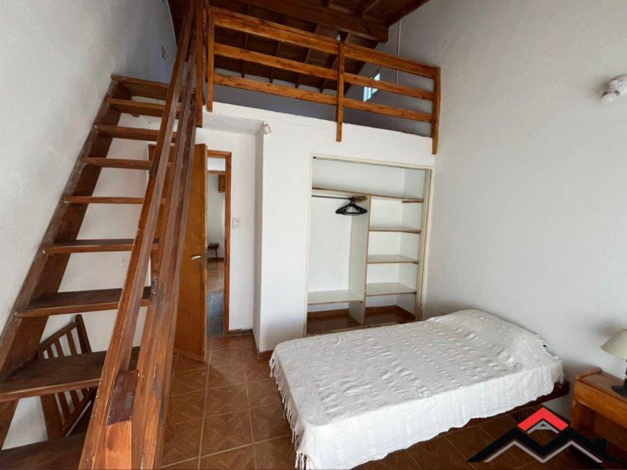 Chalet en medio lote, de 3 ambientes + entrepiso de hormigón (funcional dormitorio). Cocina-comedor y 2 dormitorios. Patio con parrilla y lavadero. Espacio de auto. Amoblado.