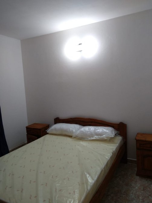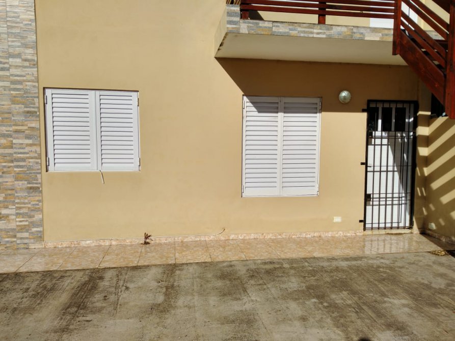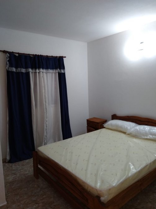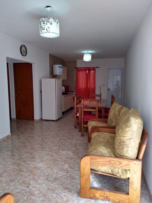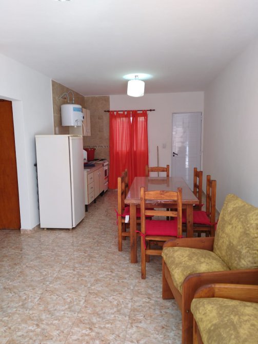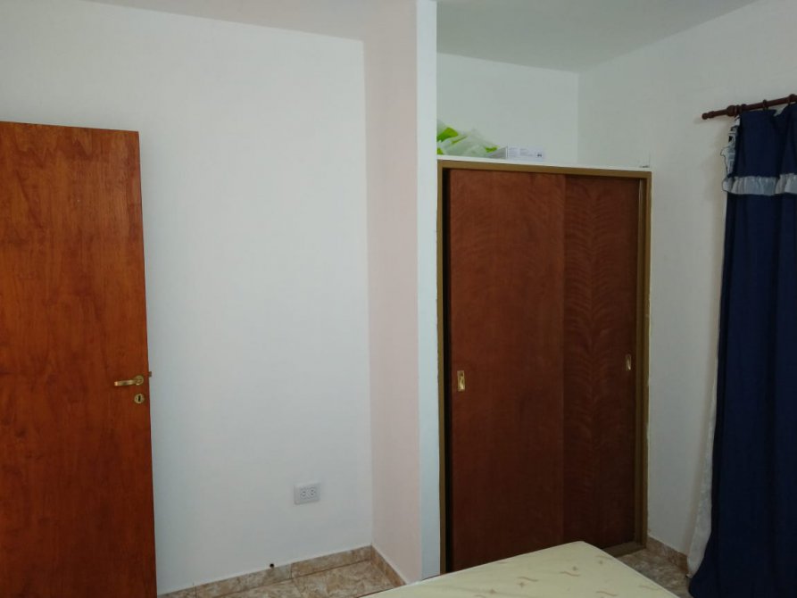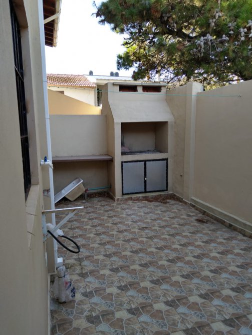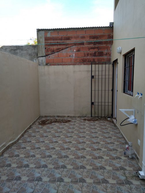 Departamento en planta baja, de 3 ambientes. Cocina-comedor y 2 dormitorios. Patio con parrilla y lavadero. Espacio de auto. Rejas. Amoblado.