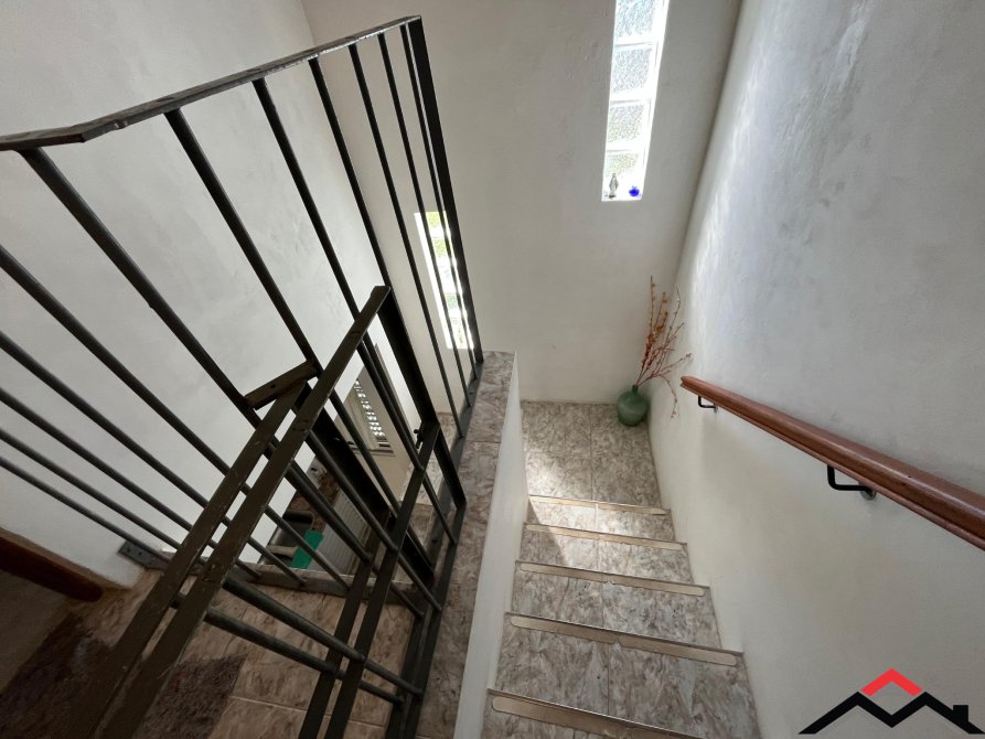 Techo de madera con tejas,escalera de hormigon,aberturas de aluminio,postigones de aluminio.